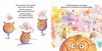 Developing solid decision-making skills is a fundamental milestone for children as they learn to navigate the world and all the choices in it. Simply said, Waffle Can't Decide is a super relatable and engaging story about making decisions and being decisive. Blue socks! Red socks! Striped socks! Within a swirl of indecisiveness, Waffle just can't decide what to do! And suddenly everything turns into a deciding disaster! Every day we need to all make all kinds of decisions. Some are easy so we don't need to think about them much. Others are tough and we need time to ponder. Decisions are important for bringing us joy, and they are crucial for survival. Everyday we make observations about the color of sky, the sound of waves, the smell of flowers, the taste of honey, but decision-making is more cerebral and abstract. As young brains develop, understanding how the brain thinks and chooses will help children better navigate the world and all the choices in it.