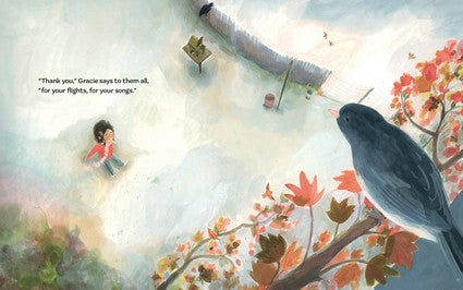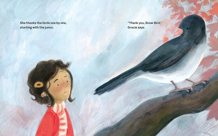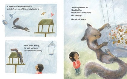 On a crisp fall day, Gracie feeds the birds. She isn't sure if the day seems different to them. But it does to her. She puts the seeds in the first feeder. Then the second. She thanks the birds one by one. A patient woodpecker. A buoyant chickadee. A grumpy finch. Even an impatient squirrel, not waiting his turn, always demanding more, more, more! (And a dog in the house who does not think the squirrel should be thanked-but Gracie knows gratitude goes both ways.) She makes sure every one of them gets a share-and her thanks just for being there. From Jane Yolen and Peter Tacy comes a poetic, meditative look at how simple acts of gratitude and kindness can bring peace and joy to our day, even when the kindness isn't necessarily reciprocated. Gratitude can be found in giving as well as receiving. There is beauty in the small moments and something to be grateful for each day. A tiny act can change someone else's day-and sometimes the birdsong is thanks enough.