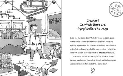 Some people think that museums are boring places full of glass cases, dust and stuff no one cares about: wrong! In a hidden headquarters below the exhibits there's a gang ready to handle dangerous, spooky or just plain weird problems: the Museum Mystery Squad. Techie-genius Nabster, mile-a-minute Kennedy and sharp-eyed Laurie (along with Colin the hamster!) tackle the surprising conundrums happening at the museum. From prehistoric creatures that move and secret Egyptian codes to missing treasure and strange messages from the past, there's no brain-twisting, totally improbable puzzle the Squad can't solve. Someone's sent the museum a blackmail letter threatening to steal a prized exhibit from the brand-new Space Zone. Can the Squad make one giant leap in their investigation, and stop the gravity-defying thief before an out-of-this-world artefact 3,2,1... takes off? In the Case from Outer Space, the Squad investigate puzzling planets, amazing astronauts and marvellous moon rocks to try to solve their latest mystery. Young readers will love the riddles, red herrings and big reveals jam-packed into this fun-filled series of mystery stories by Mike Nicholson. The enjoyable extras like wacky facts and activities, as well as zany illustrations by Mike Phillips, will keep amateur detectives entertained for hours.