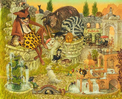 This is a dog walk like no other, through amazing fairy-tale worlds, paintings come to life, Escher-esque castles, an intricately cluttered antique shop, and past countless delights: walking teapots, miniature steamboats, giant hedgehogs and islands with sails.
