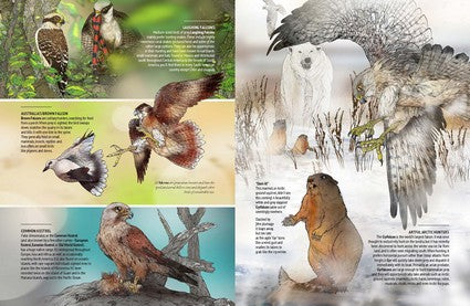 Myke Mollards signature illustrations and engaging text bring kids up close and personal with over 150 of the world’s most powerful, ingenious and charismatic birds of prey. From Ospreys to owls, eagles to condors, there are magnificent representatives from every continent where they are found. The birds are not only beautifully drawn and coloured, but the accompanying text also vividly describes their lifestyles and habits. The wonderment of these stunning creatures, delivered in an engaging cinematic punch, will excite the imaginations of children for life, and fully engage any adult with a love of raptors and other birds of prey.