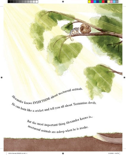 He can hum like a cricket and tell you all about Tasmanian devils. But the most important thing Alexander knows is… nocturnal animals are asleep when he is awake. So why would Mummy want him to sleep when the Sun is still high in the sky? This engaging story, with bite-sized asides of fascinating facts, explores the world of Australian nocturnal animals through the eyes of an inquisitive child.